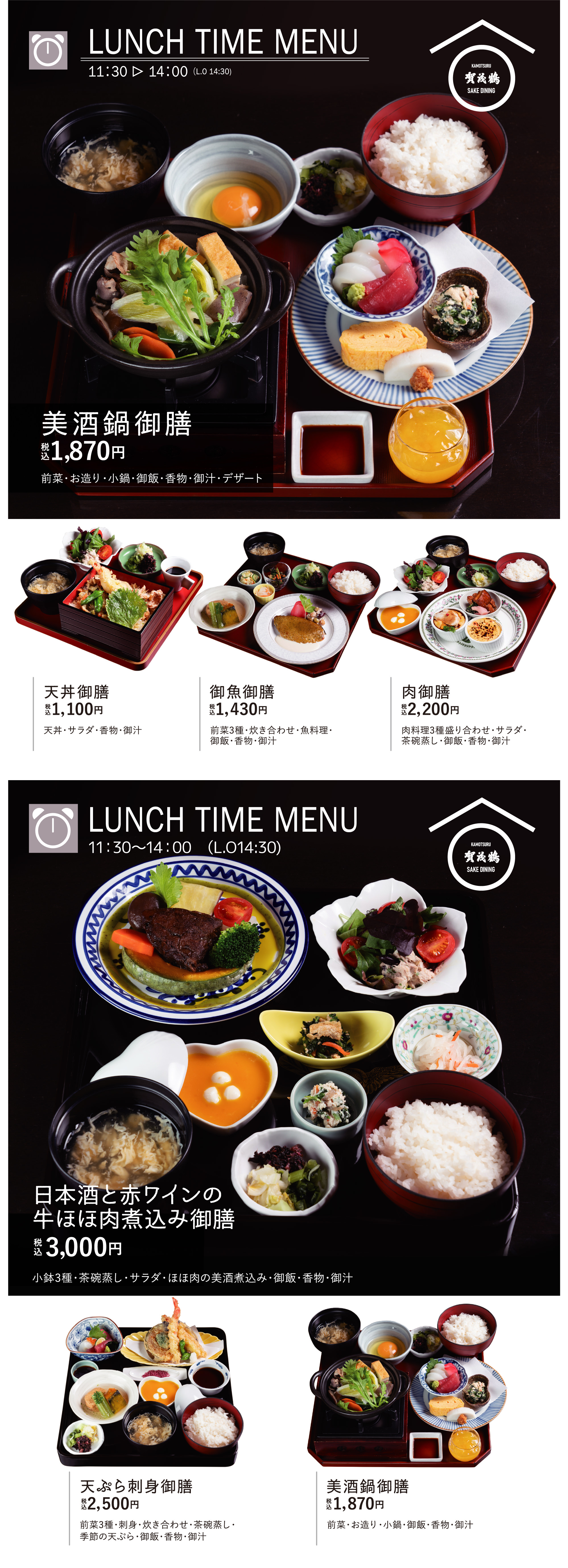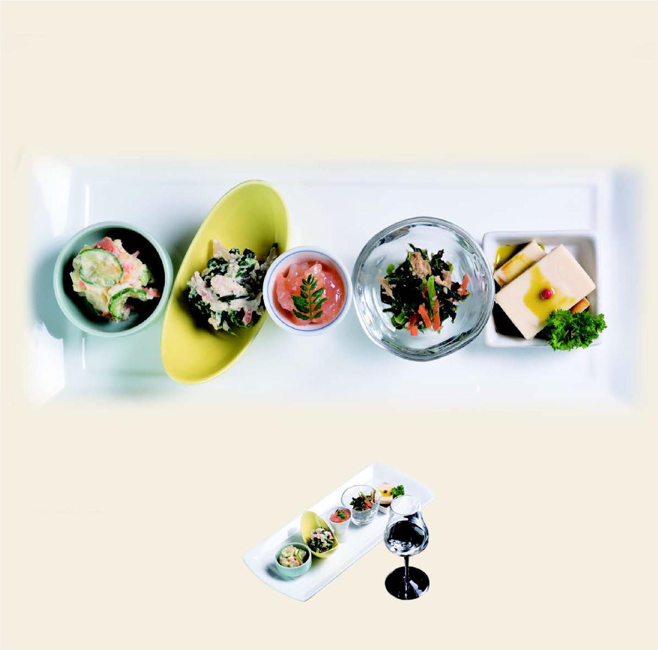 1階のダイニングでは賀茂鶴の多彩な日本酒ラインナップを和洋の料理でカジュアルにお楽しみください